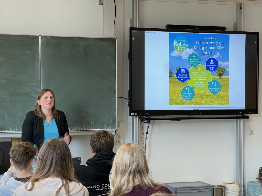 Hierzu diskutierten die Schülerinnen und Schüler mit Elisabeth Fastenmayer aus dem Regionalmanagement des Landkreises die Themen Hitzeschutz, Temperaturanstieg, Entwicklung der Frosttage ebenso wie den aktuellen Mix an Erneuerbaren Energien im Landkreis Rottal-Inn sowie in einzelnen Gemeinden wie Gangkofen, Rimbach, Arnstorf oder der Stadt Eggenfelden.