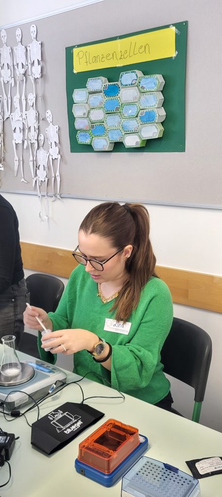 Dabei stand das Per3‑Gen im Mittelpunkt. Es entscheidet mit, ob jemand morgens fit oder eher nachtaktiv ist – Lerchen besitzen darin fünf, Eulen vier Wiederholungen einer bestimmten DNA‑Sequenz. Nachdem die Schüler zunächst selbst DNA aus ihren Mundschleimhautzellen gewonnen hatten, folgten klassische molekularbiologische Arbeitsschritte: DNA‑Extraktion, PCR‑Vervielfältigung und anschließende Analyse per Gelelektrophorese.