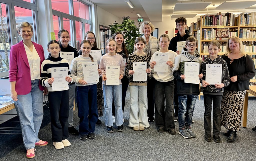 Im Rahmen einer kleinen Siegerehrung erhielten alle Teilnehmenden einen Preis und ihre Urkunden von Schulleiterin Patrizia Wolf, Fachschaftsleiterin Julia Rabanter und Betreuungslehrkraft Andrea Renner. Emilia, Jonas und Mona wurden zudem für die Teilnahme am Landeswettbewerb in Passau bzw. Nürnberg ausgewählt.