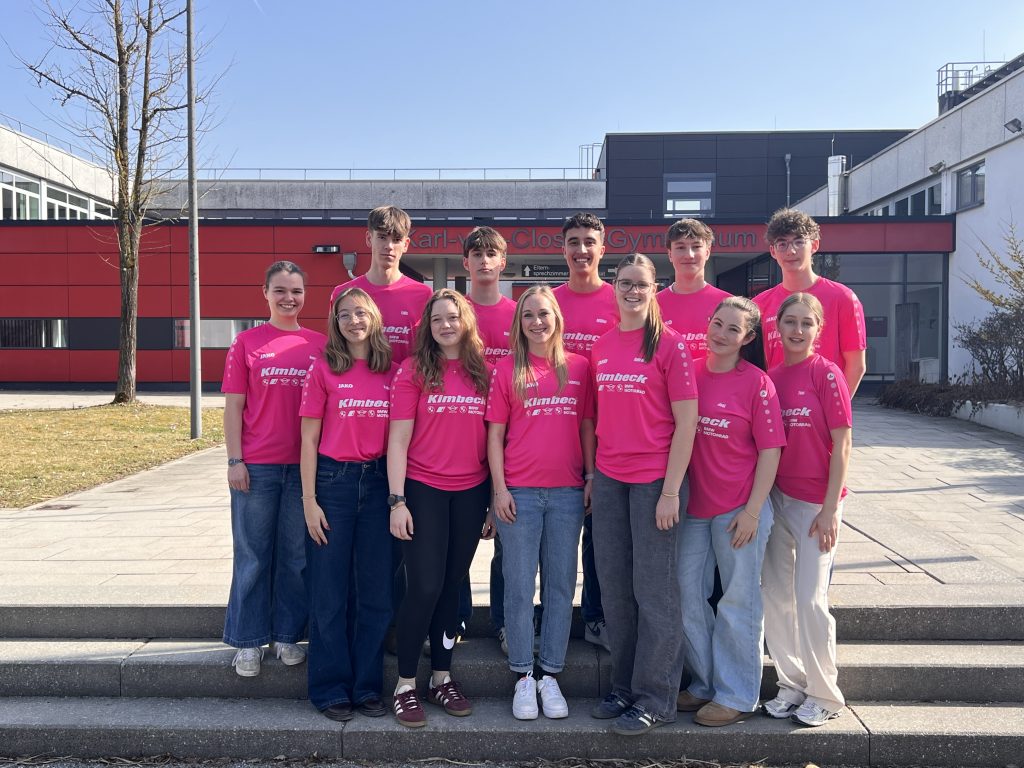 Das Leistungsfach Sport 2025/2027 durfte sich über eine neue Einkleidung freuen. Dank der freundlichen Unterstützung des Autohauses Kimbeck konnten die Schülerinnen und Schüler mit einheitlicher Sportkleidung ausgestattet werden.