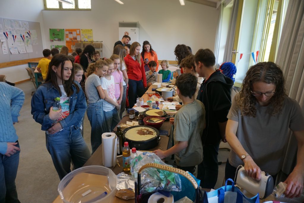 Der Duft frischgebackener Crêpes lockte viele Zuschauer ins französische Café. Dort bot die Fachschaft Französisch zusammen mit tatkräftiger Unterstützung zahlreicher Schülerinnen und Schüler französische Leckereien wie Quiches und Crêpes an und lud zum Verweilen und netten Gesprächen ein. Nebenan konnten die Grundschüler in einem kleinen Sprachkurs erste spielerische Bekanntschaft mit der französischen Sprache machen, was allen viel Spaß bereitete.
