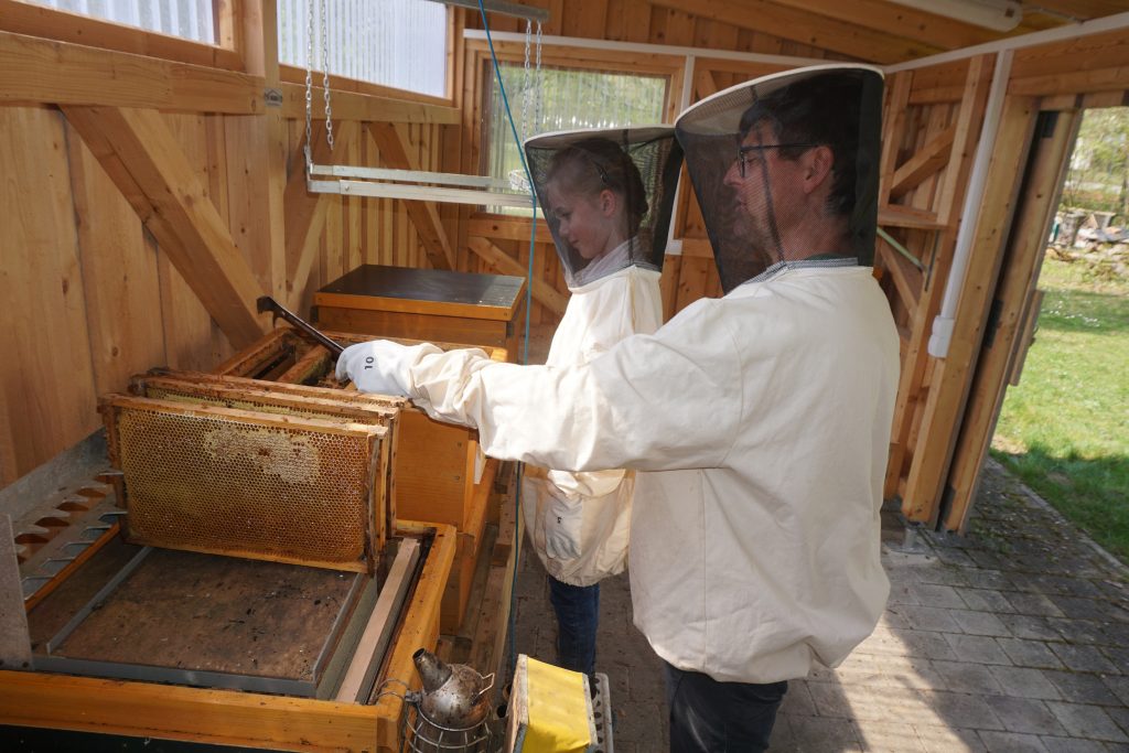 Großer Andrang herrschte am Bienenstand. Die Schülerinnen und Schüler des Wahlkurses „Schulimkerei“ freuten sich infolgedessen auch über das große Interesse am Closen-Honig. Bei herrlichem Frühlingswetter konnten alle Interessierten das rege Treiben in den Bienenstöcken beobachten.