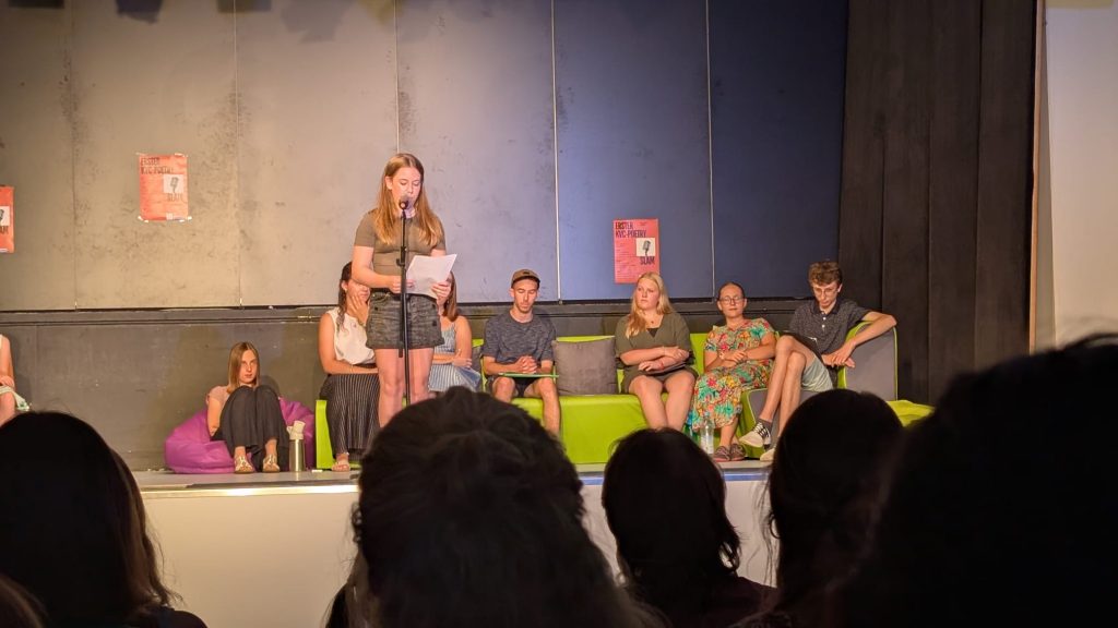 Im Wahlkurs Poetry Slam steht die Freude am Schreiben und am gesprochenen Wort im Mittelpunkt. Schülerinnen und Schüler verfassen eigene Texte – humorvoll, nachdenklich oder ganz persönlich – und lernen, sie mit Ausdruck und Bühnenpräsenz zu präsentieren.